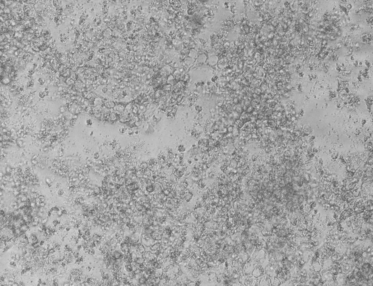 RSウイルスに特徴的な細胞変性効果(CPE)である合胞体が多数認められた。