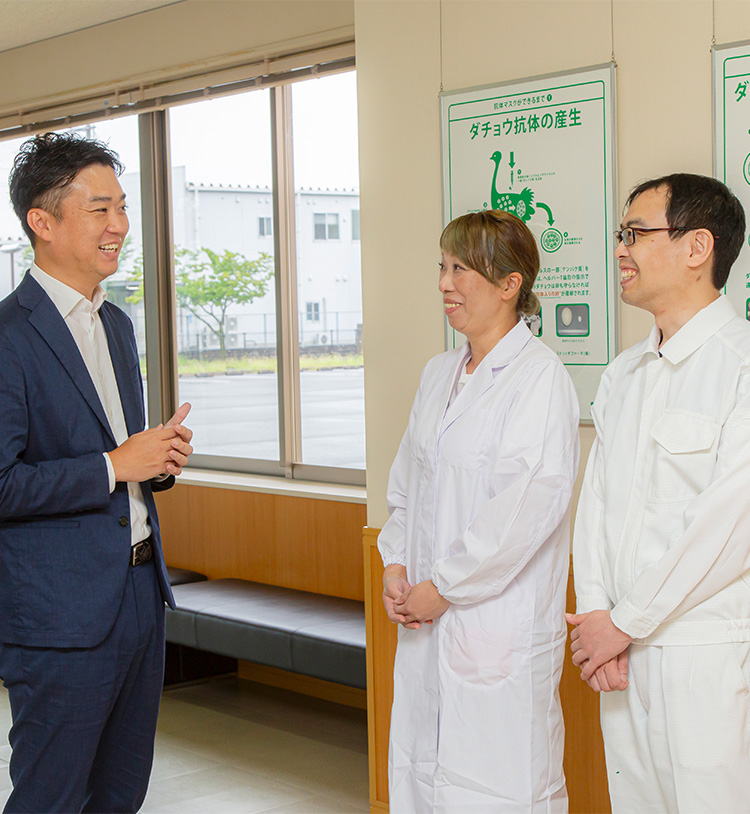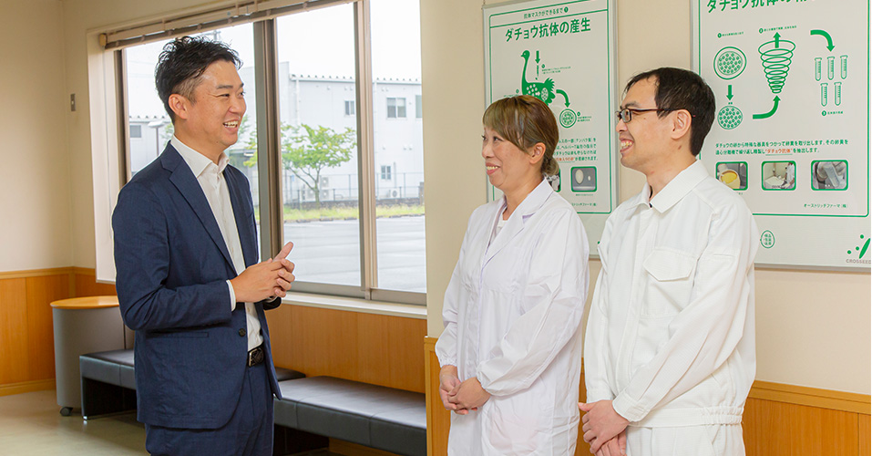 主力商品のダチョウ抗体マスクは、わたしの入社時にはすでにブランドが確立されていました。しかしわたしは成長を怠らず、さらなる可能性を見つけたいのです。技術進歩のためには、お客様や社内の検品担当者など、装置に詳しくない側の意見を聞くことも重要だと考えています。